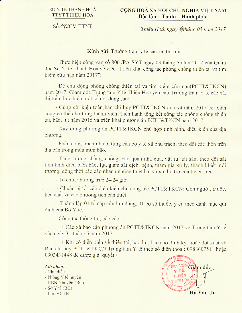 | Cơ quan ban hành | Trung tâm Y tê Thiệu Hóa |